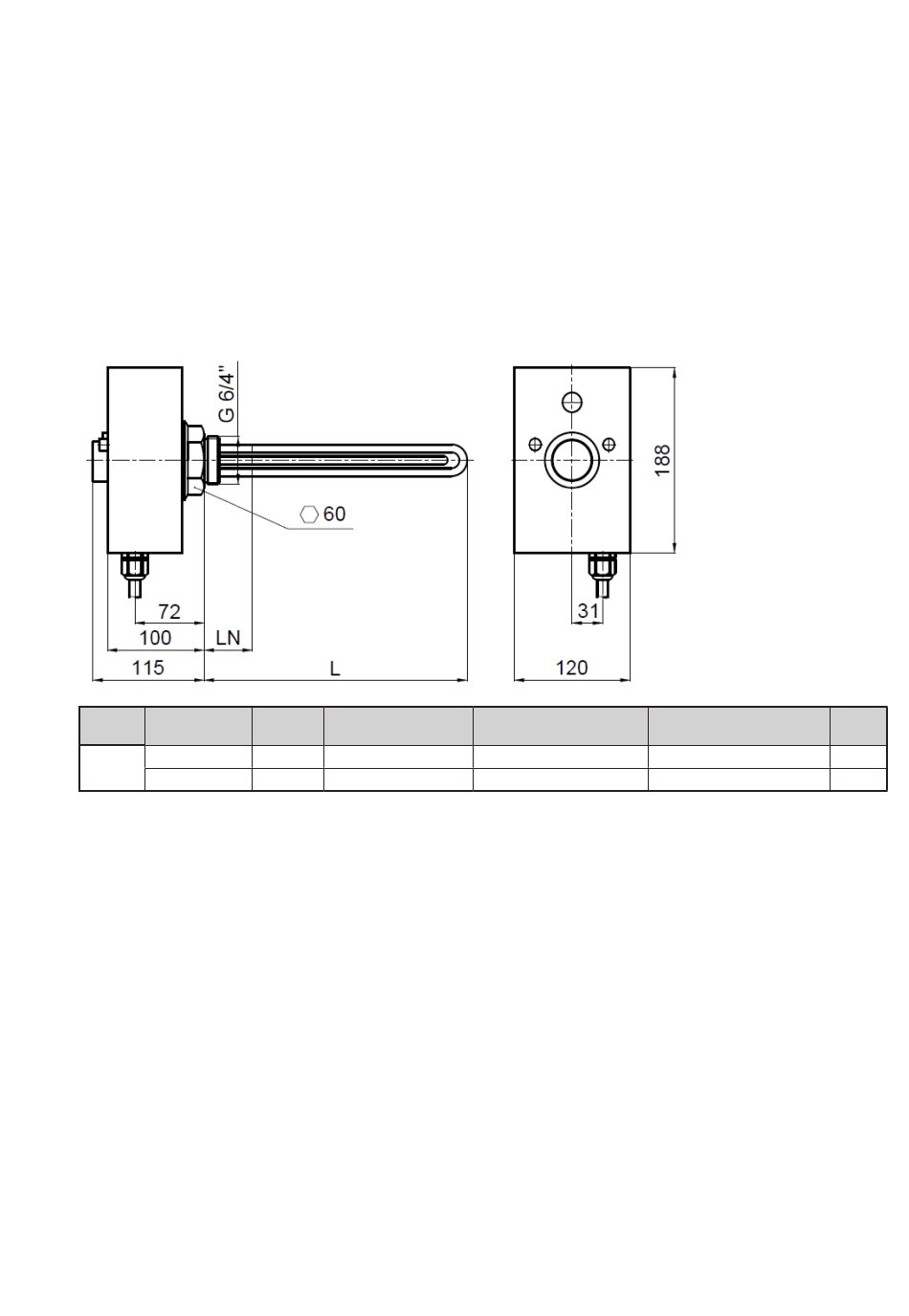 Die elektrische Heizpatrone besteht aus einem vernickelten Heizelement mit einem Außengewinde G 6/4",