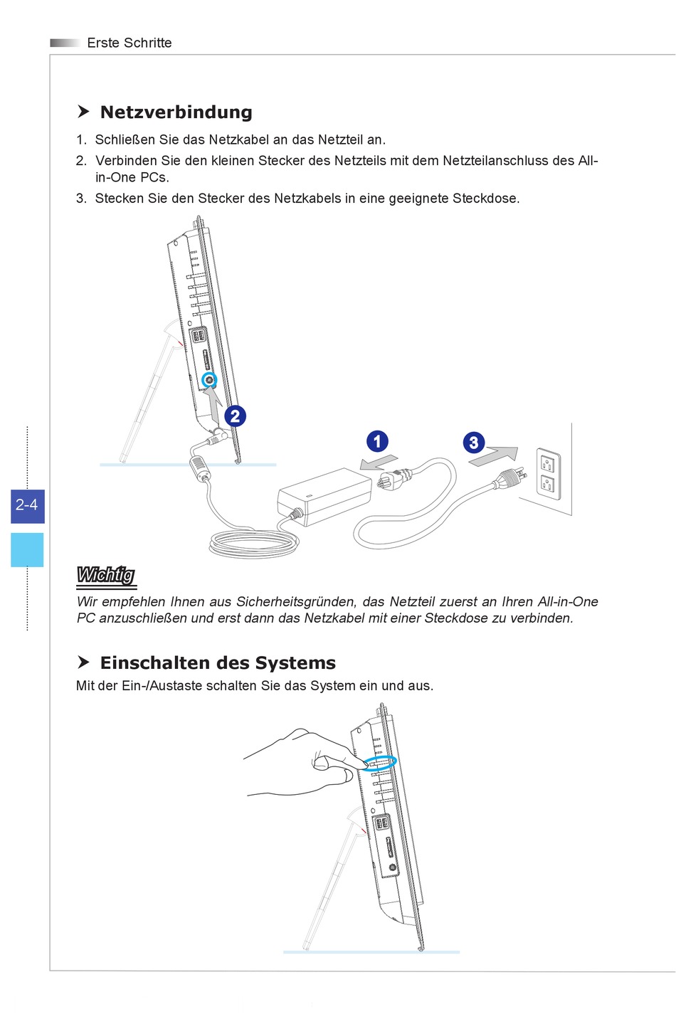Wir empfehlen Ihnen aus Sicherheitsgründen, das Netzteil zuerst an Ihren All-in-One