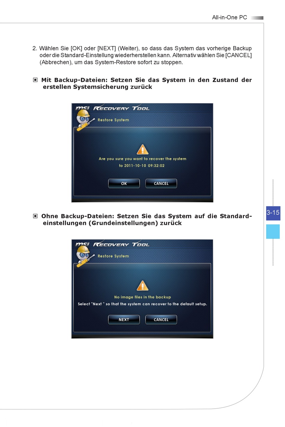 2� Wählen Sie [OK] oder [NEXT] (Weiter), so dass das System das vorherige Backup