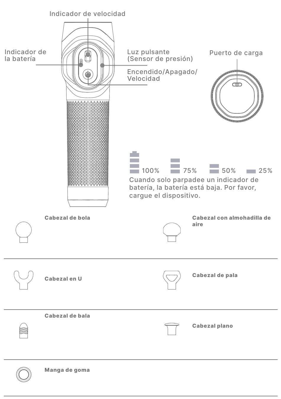 Cada cabezal de masaje viene preinstalado con una funda de goma, si