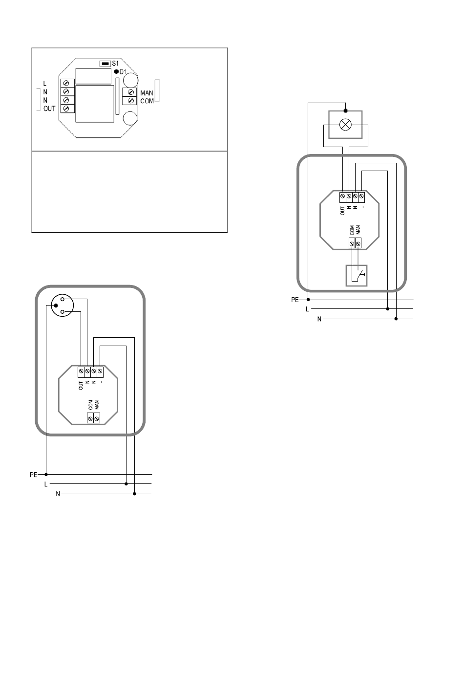 Schließen Sie die Lampe an die Klemmen N und OUT des