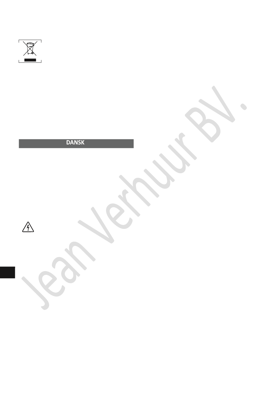 FARE! RISIKO FOR ELEKTRISK STØD!