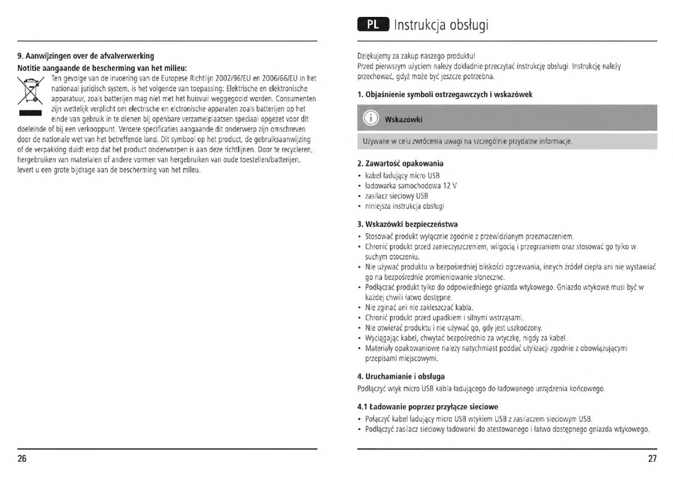 Nie otwierać produktu i nie używać go, gdy jest uszkodzony.