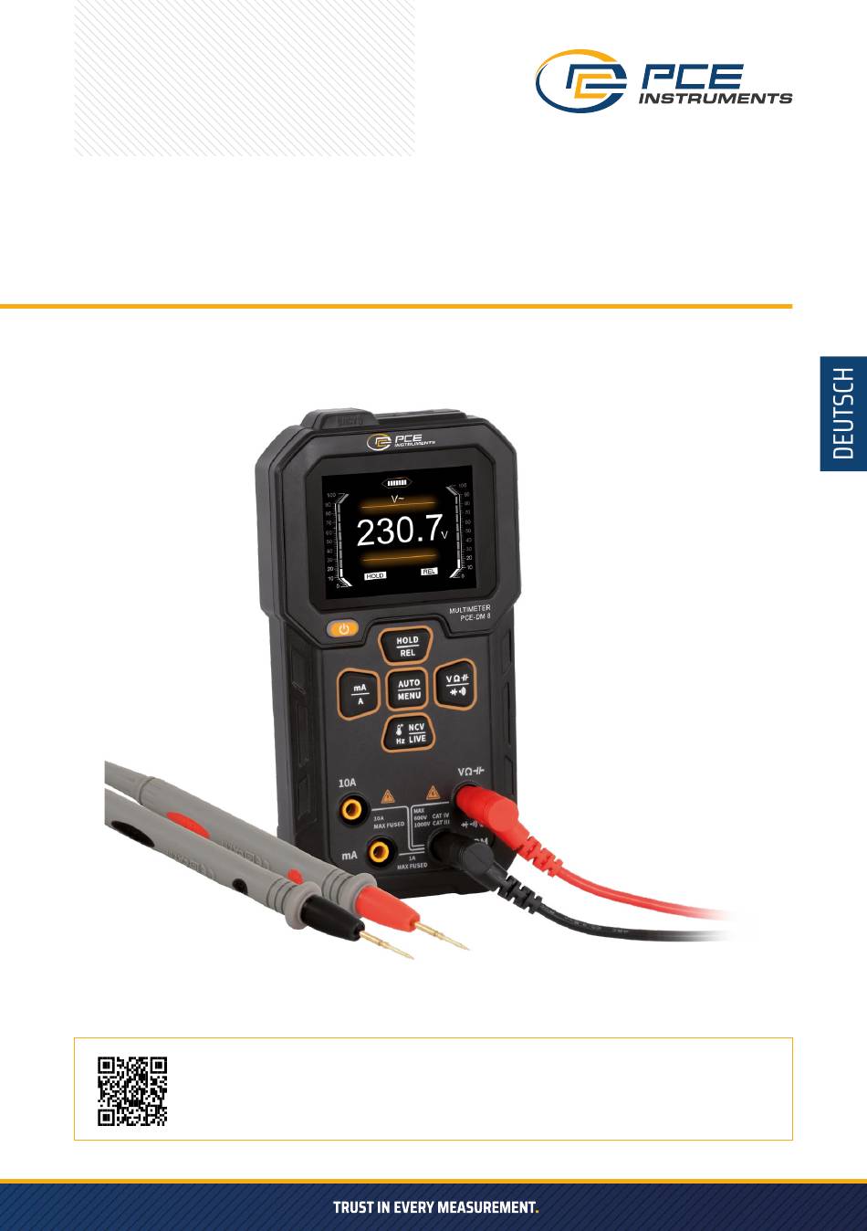 BEDIENUNGSANLEITUNG DIGITAL-MULTIMETER PCE-DM 8 User manuals in various languages (français, italiano, español, português, nederlands, türk, polski) can be found via our product search on: www.pce-instruments.com...
