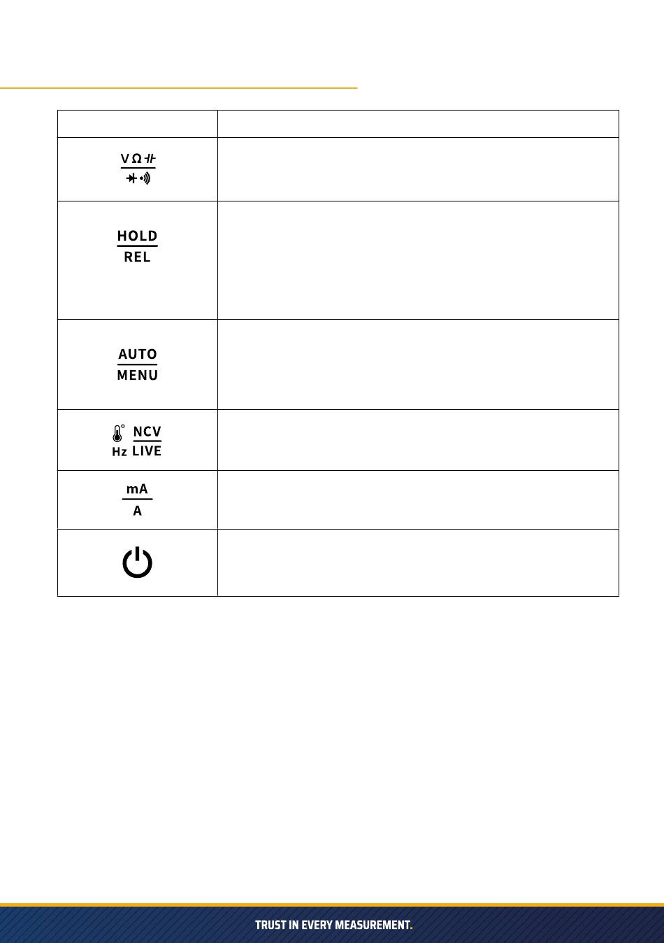 Frequenz, Temperatur, NCV, LIVE-Auswahlschlüssel;