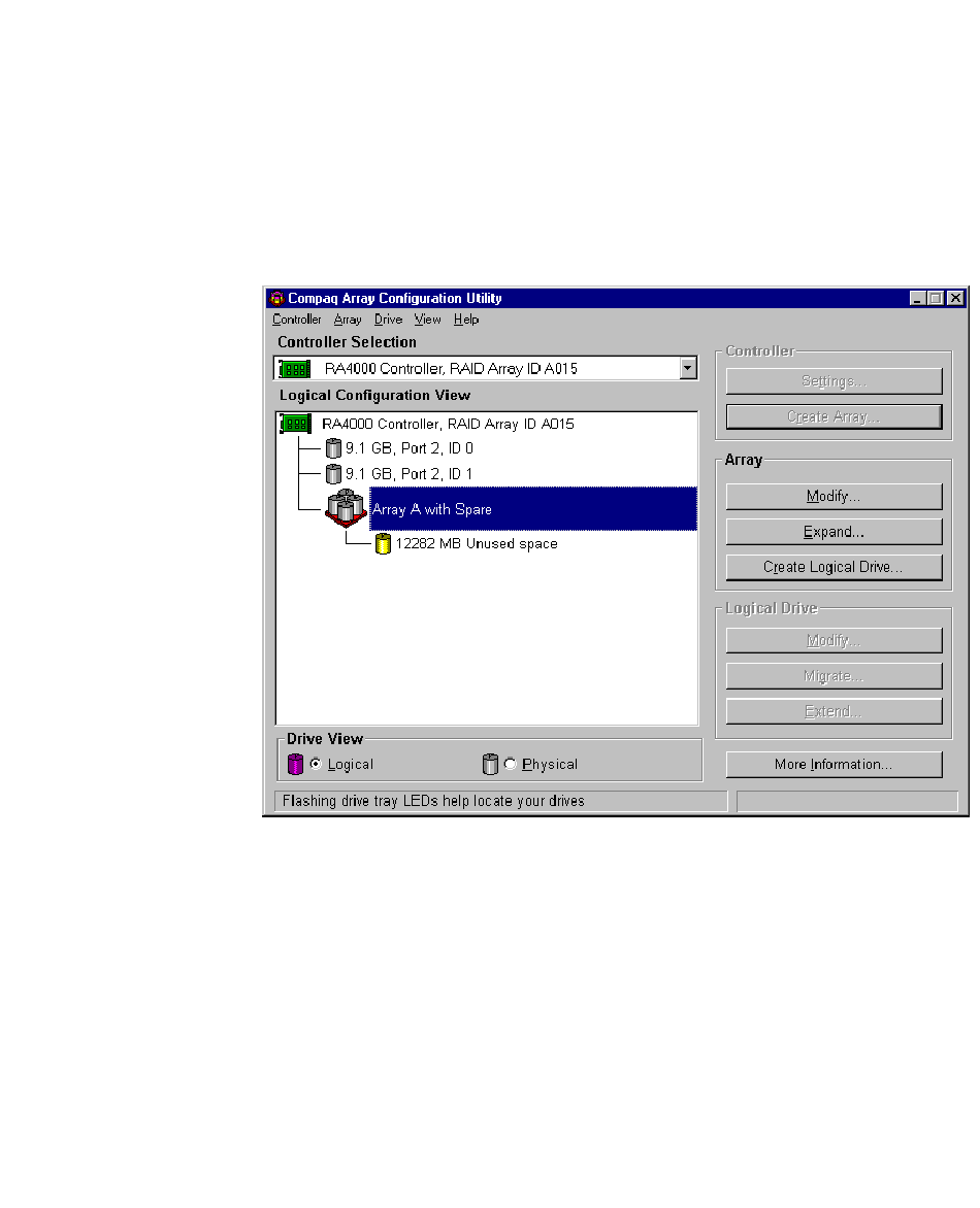 Compaq Array Configuration Utility zurückzukehren. Die Einträge im