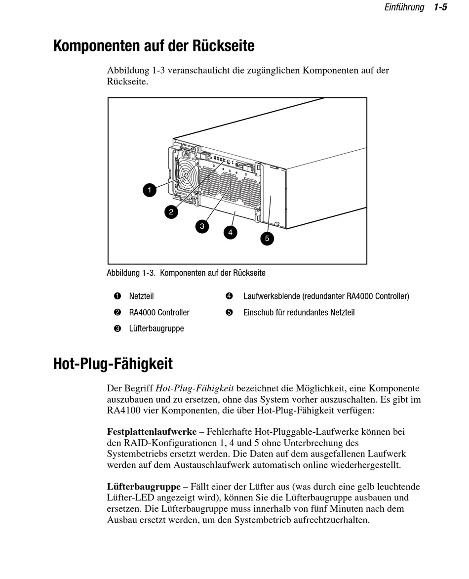 RA4100 vier Komponenten, die über Hot-Plug-Fähigkeit verfügen: