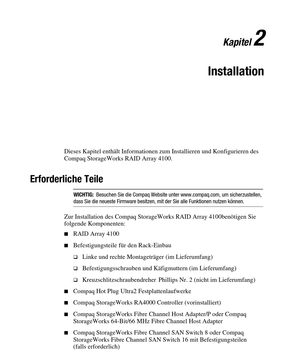 Zur Installation des Compaq StorageWorks RAID Array 4100benötigen Sie