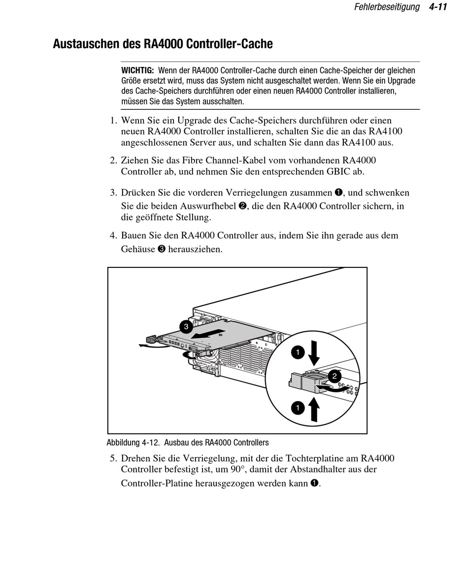 des Cache-Speichers durchführen oder einen neuen RA4000 Controller installieren,