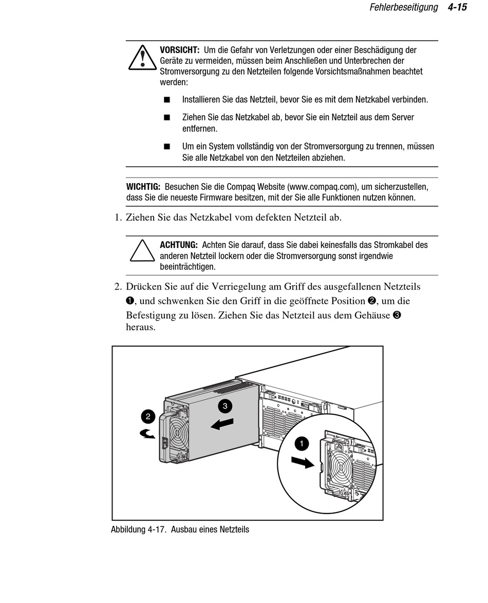 Ziehen Sie das Netzkabel ab, bevor Sie ein Netzteil aus dem Server