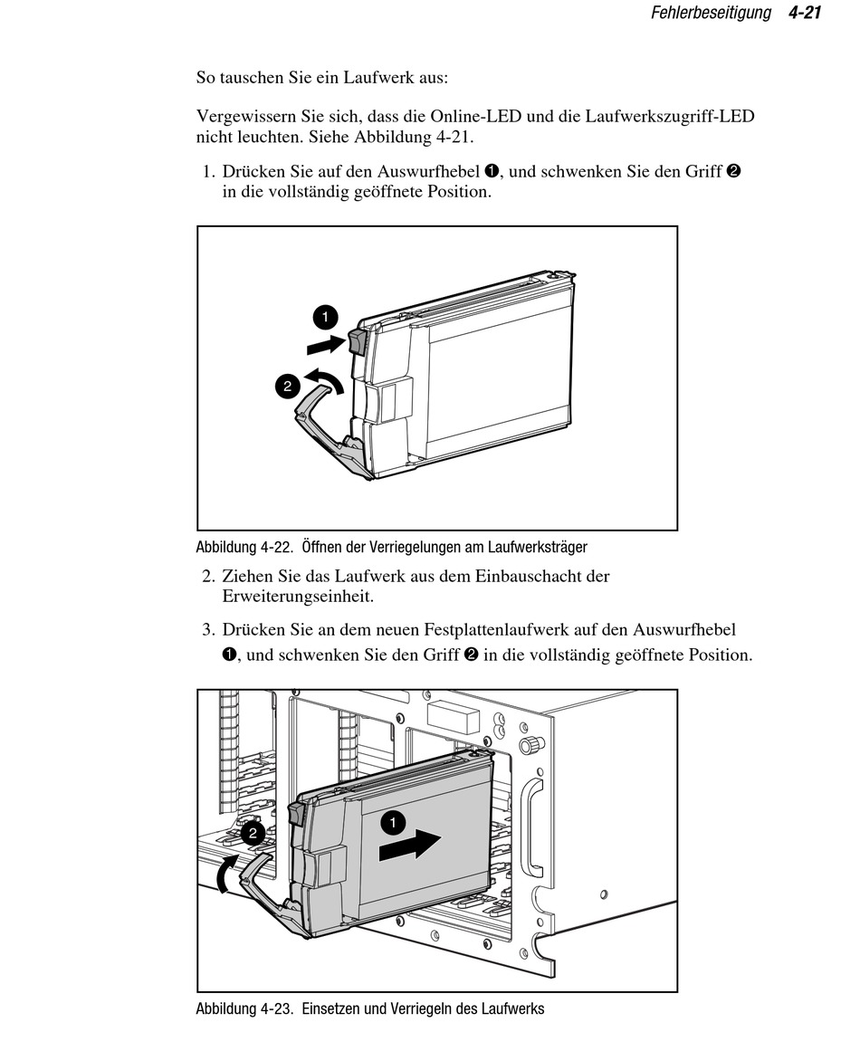 Abbildung 4-23. Einsetzen und Verriegeln des Laufwerks