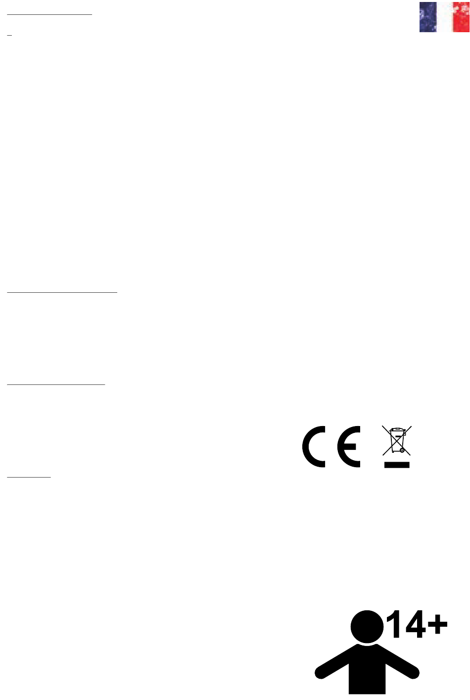 La garantie ne s'applique qu'aux défauts matériels et/ou fonctionnels déjà présents au moment de l'achat du produit.