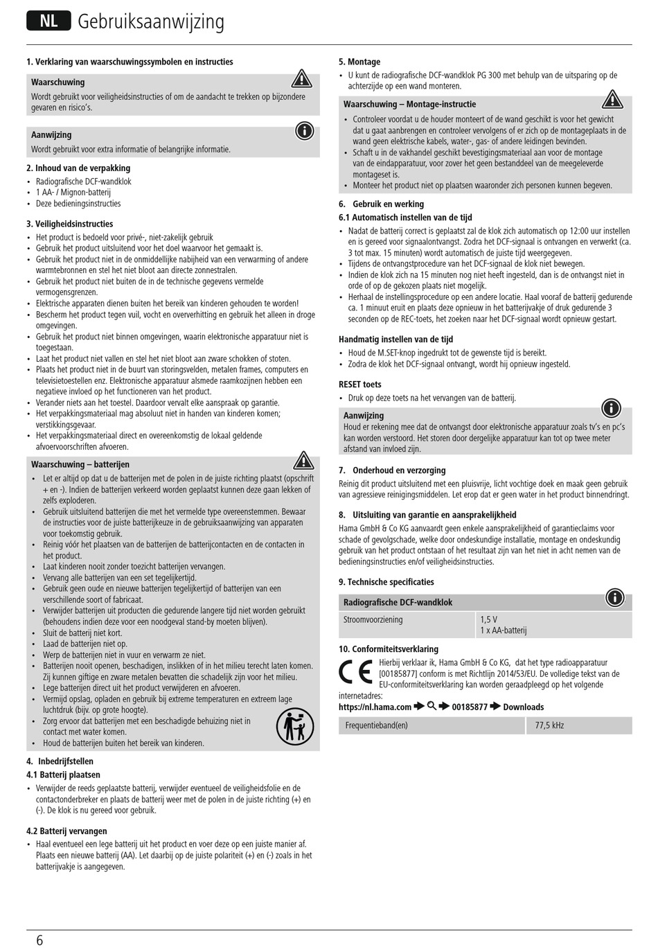• Zodra de klok het DCF-signaal ontvangt, wordt hij opnieuw ingesteld.