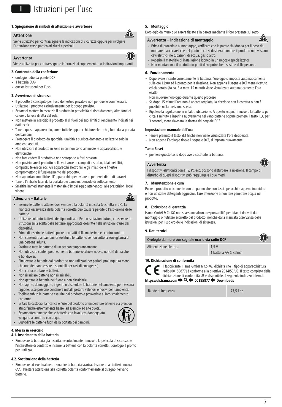 7. Manutenzione e cura