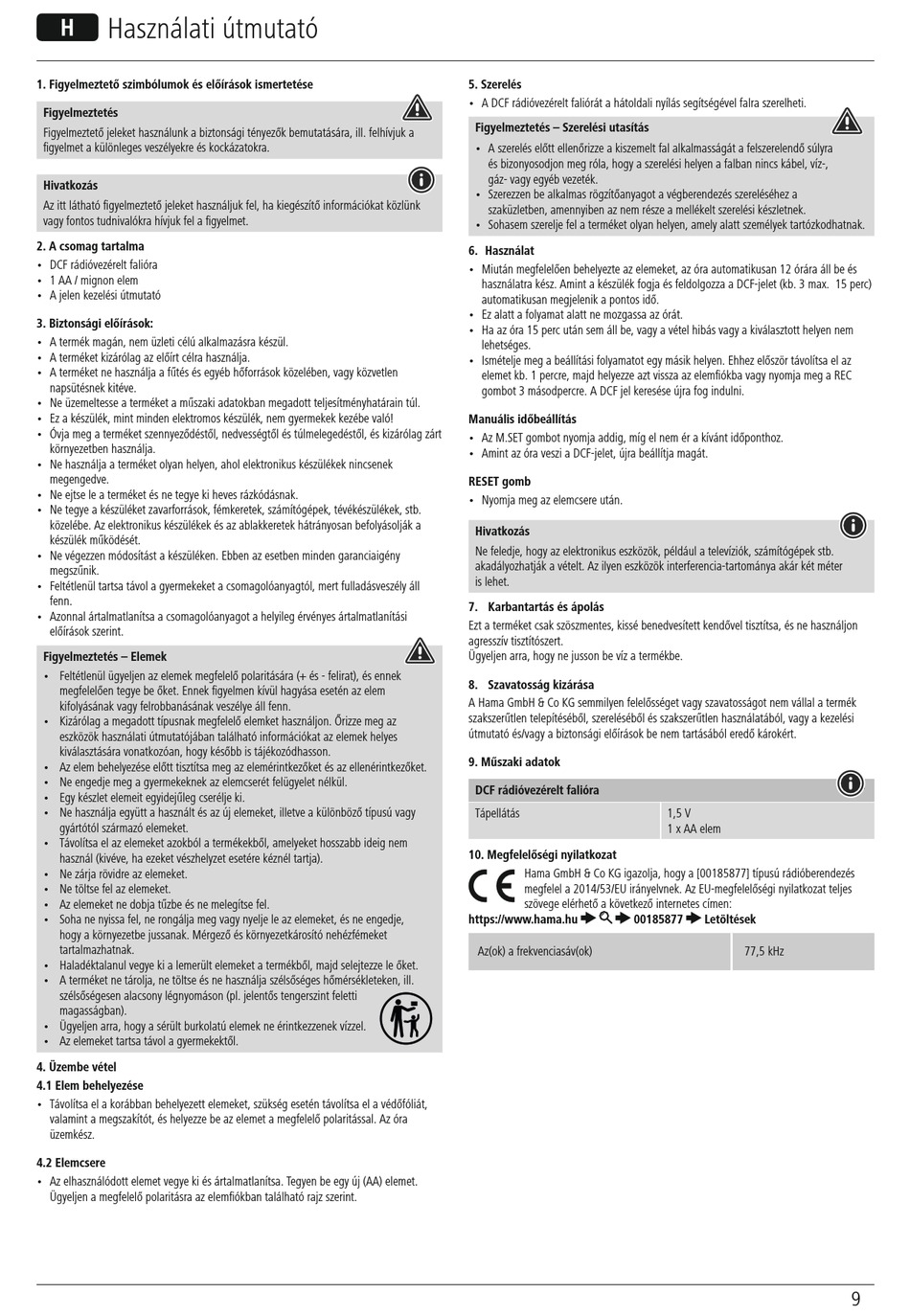 • A DCF rádióvezérelt faliórát a hátoldali nyílás segítségével falra szerelheti.