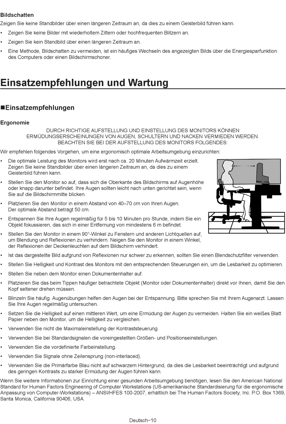Anpassung von Computer-Workstations) – ANSI/HFES 100-2007, erhältlich bei The Human Factors Society, Inc. P.O. Box 1369,