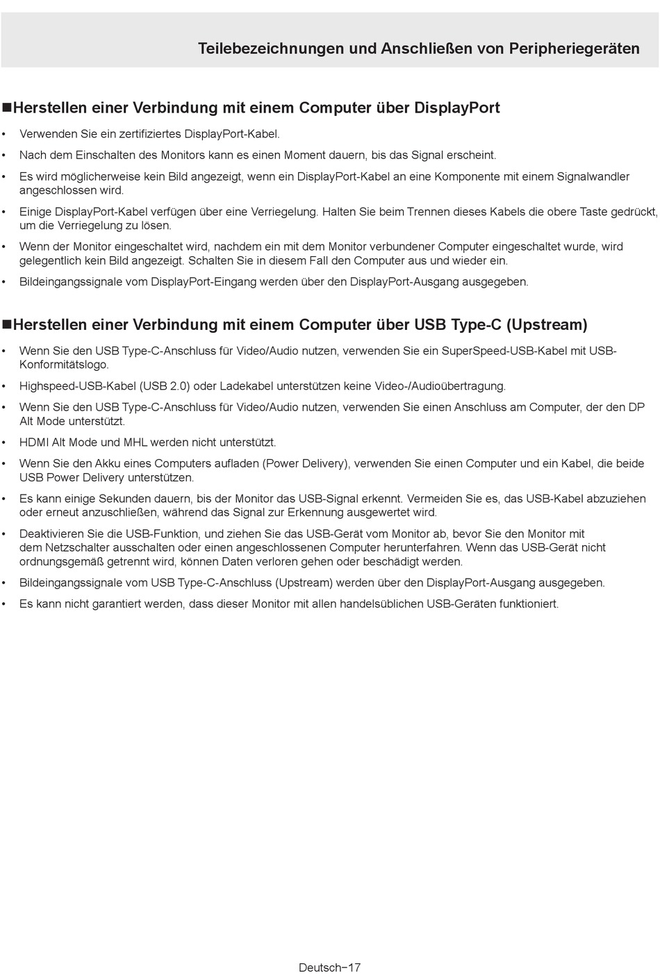Es kann nicht garantiert werden, dass dieser Monitor mit allen handelsüblichen USB-Geräten funktioniert.