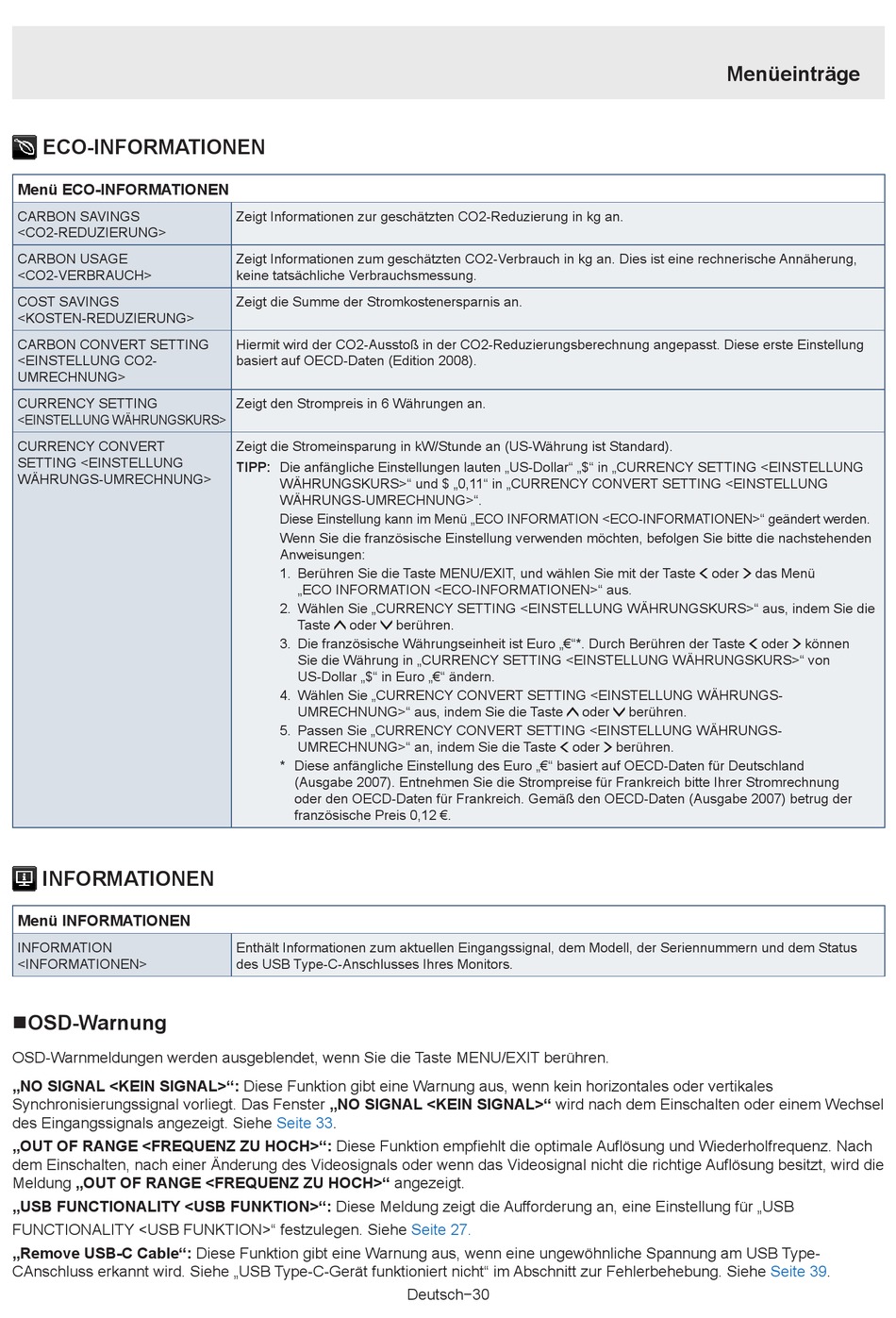D iese Einstellung kann im Menü „ECO INFORMATION <ECO-INFORMATIONEN>" geändert werden.