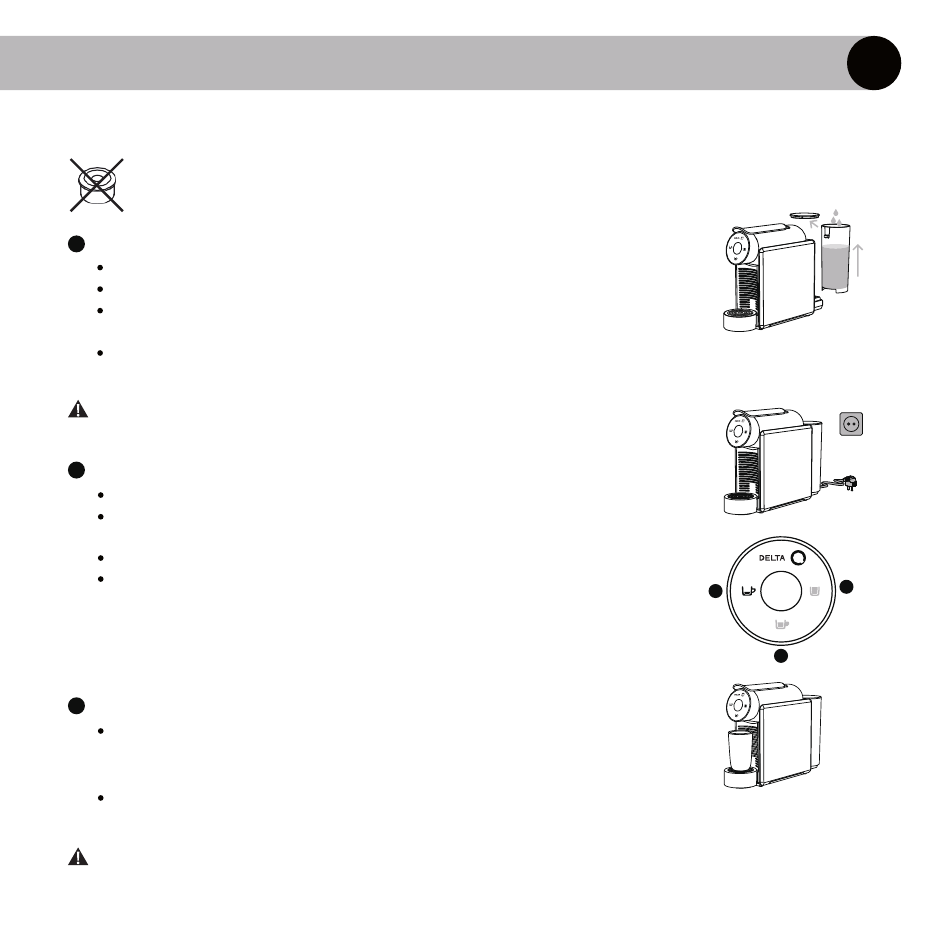 W przydpadku gdy ekspres nie usunie wody, należy powtórzyć Tryb Uruchamiania Od punktu 2.