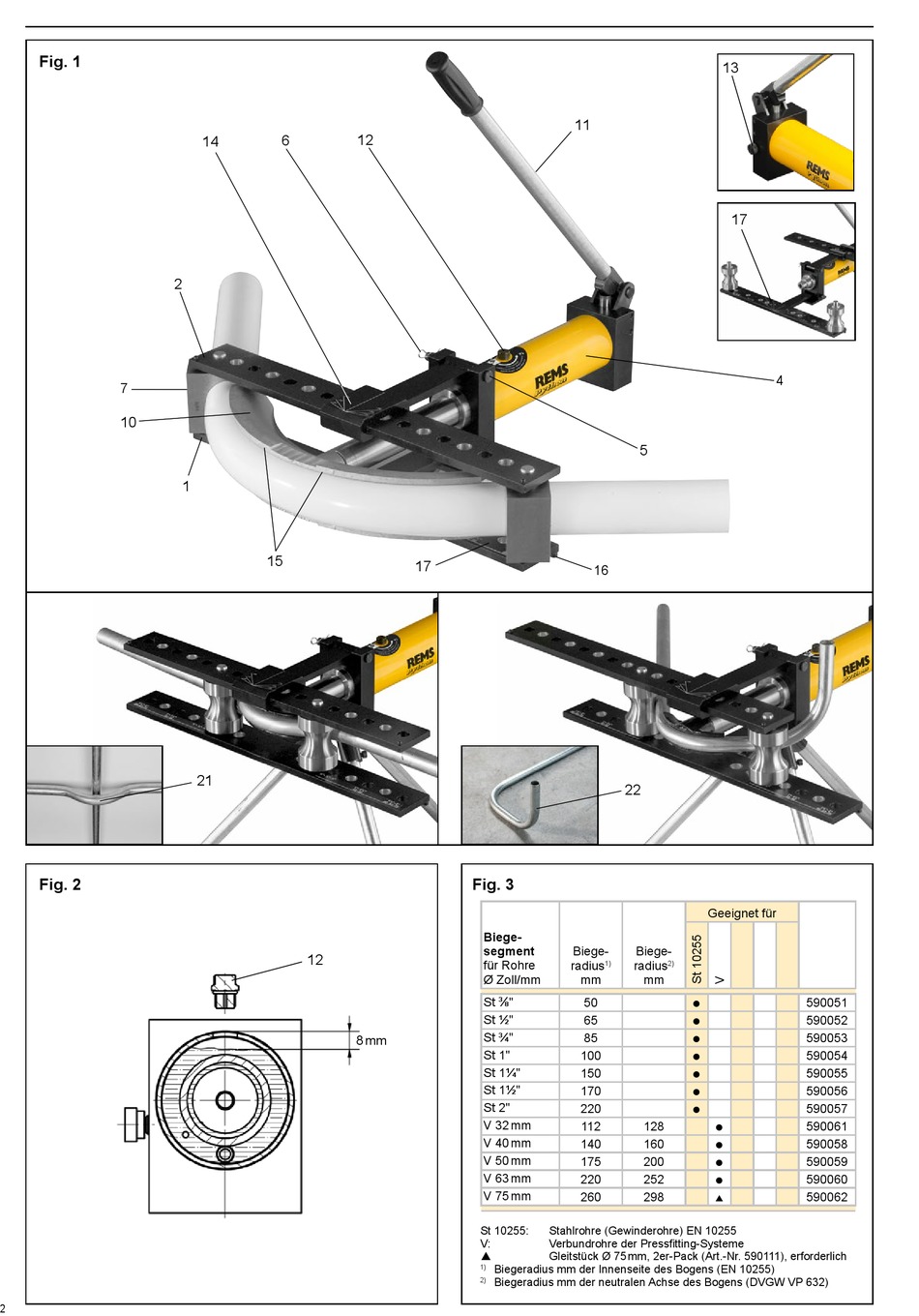 Biegeradius mm der Innenseite des Bogens (EN 10255)