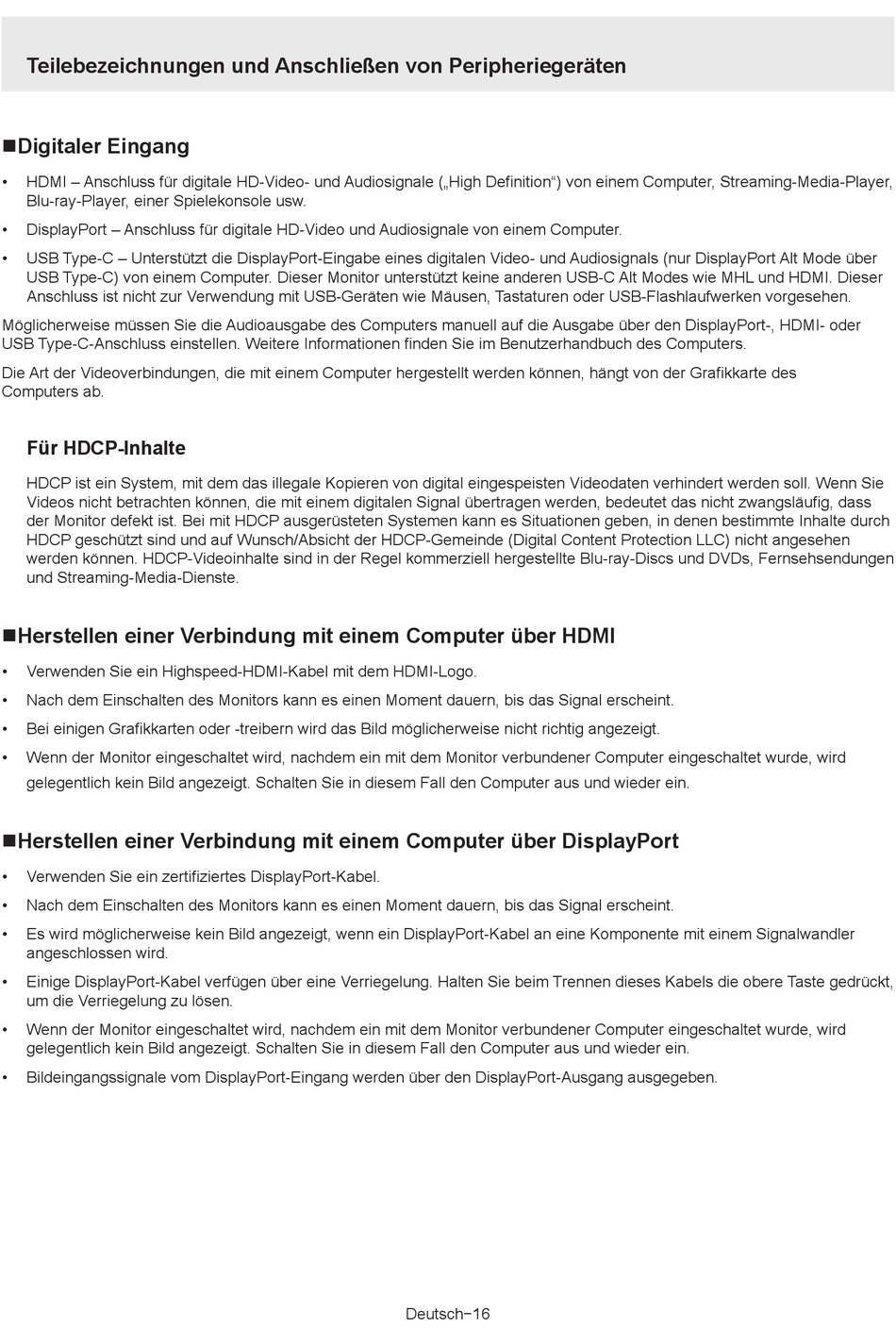USB Type-C) von einem Computer. Dieser Monitor unterstützt keine anderen USB-C Alt Modes wie MHL und HDMI. Dieser