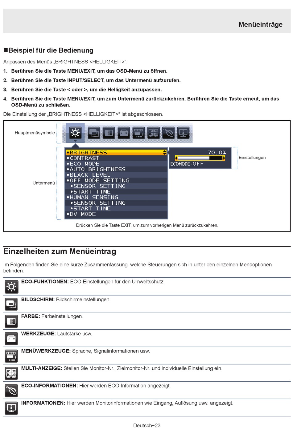ECO-FUNKTIONEN: ECO-Einstellungen für den Umweltschutz.