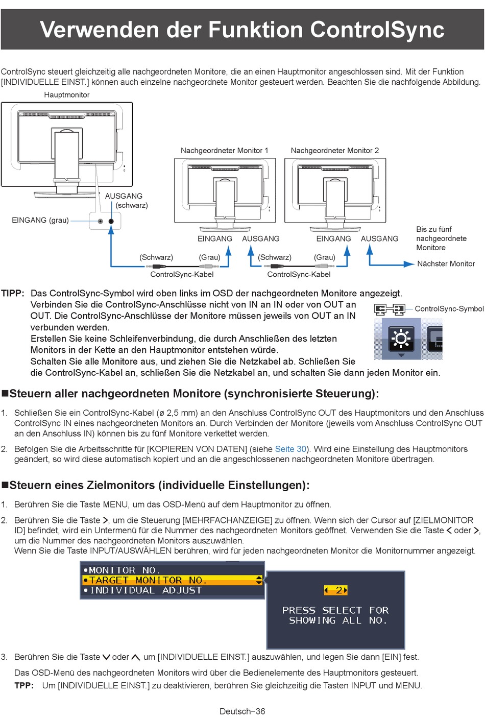 nSteuern aller nachgeordneten Monitore (synchronisierte Steuerung):