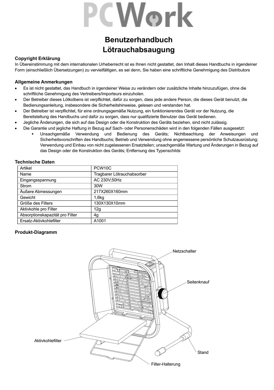 Der Betreiber dieses Lötkolbens ist verpflichtet, dafür zu sorgen, dass jede andere Person, die dieses Gerät benutzt, die