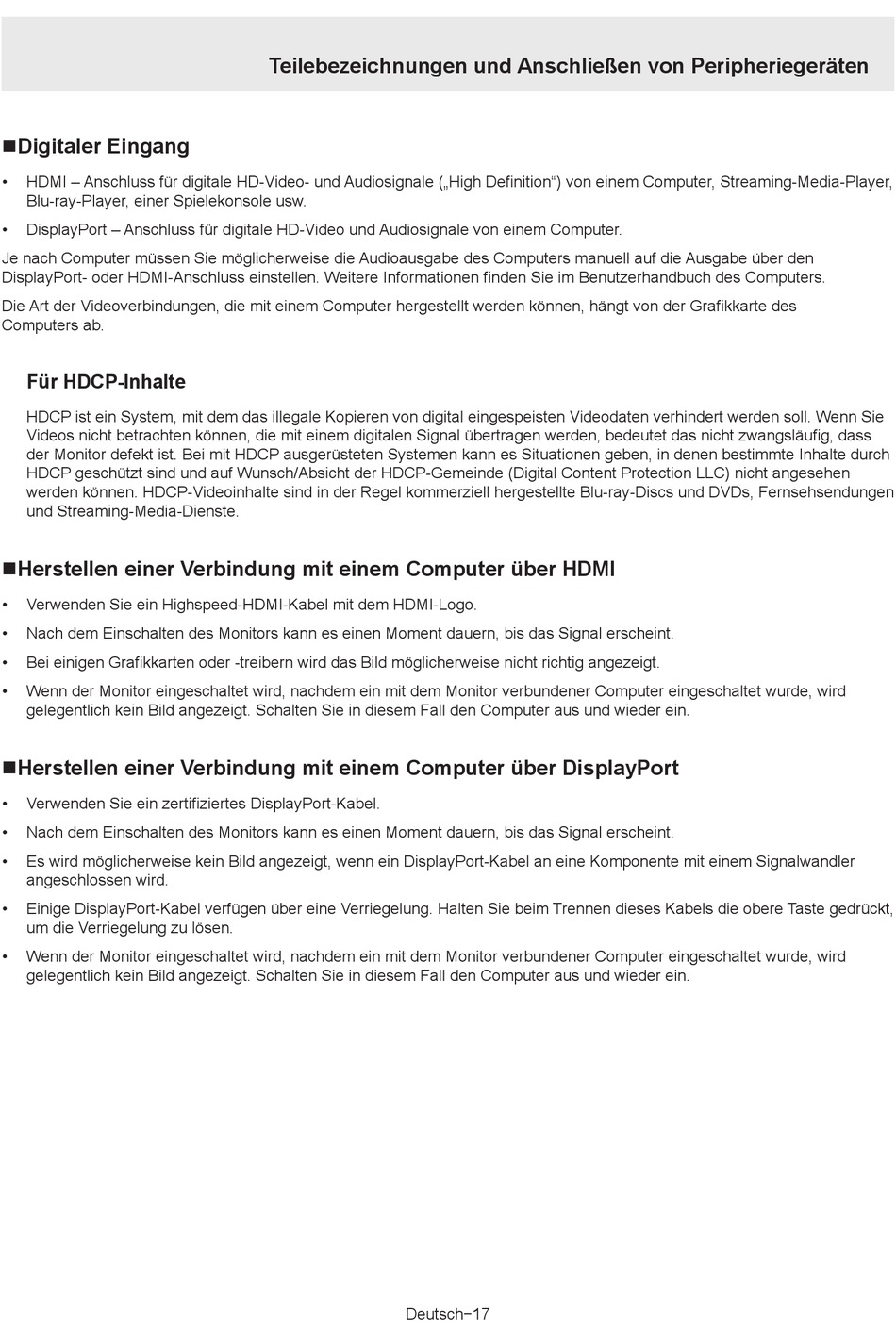 der Monitor defekt ist. Bei mit HDCP ausgerüsteten Systemen kann es Situationen geben, in denen bestimmte Inhalte durch