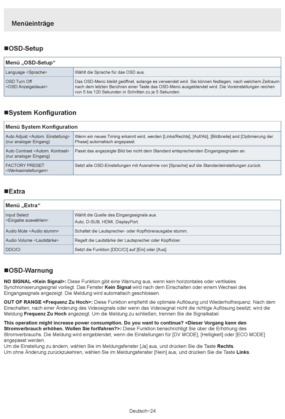 NO SIGNAL <Kein Signal>: Diese Funktion gibt eine Warnung aus, wenn kein horizontales oder vertikales