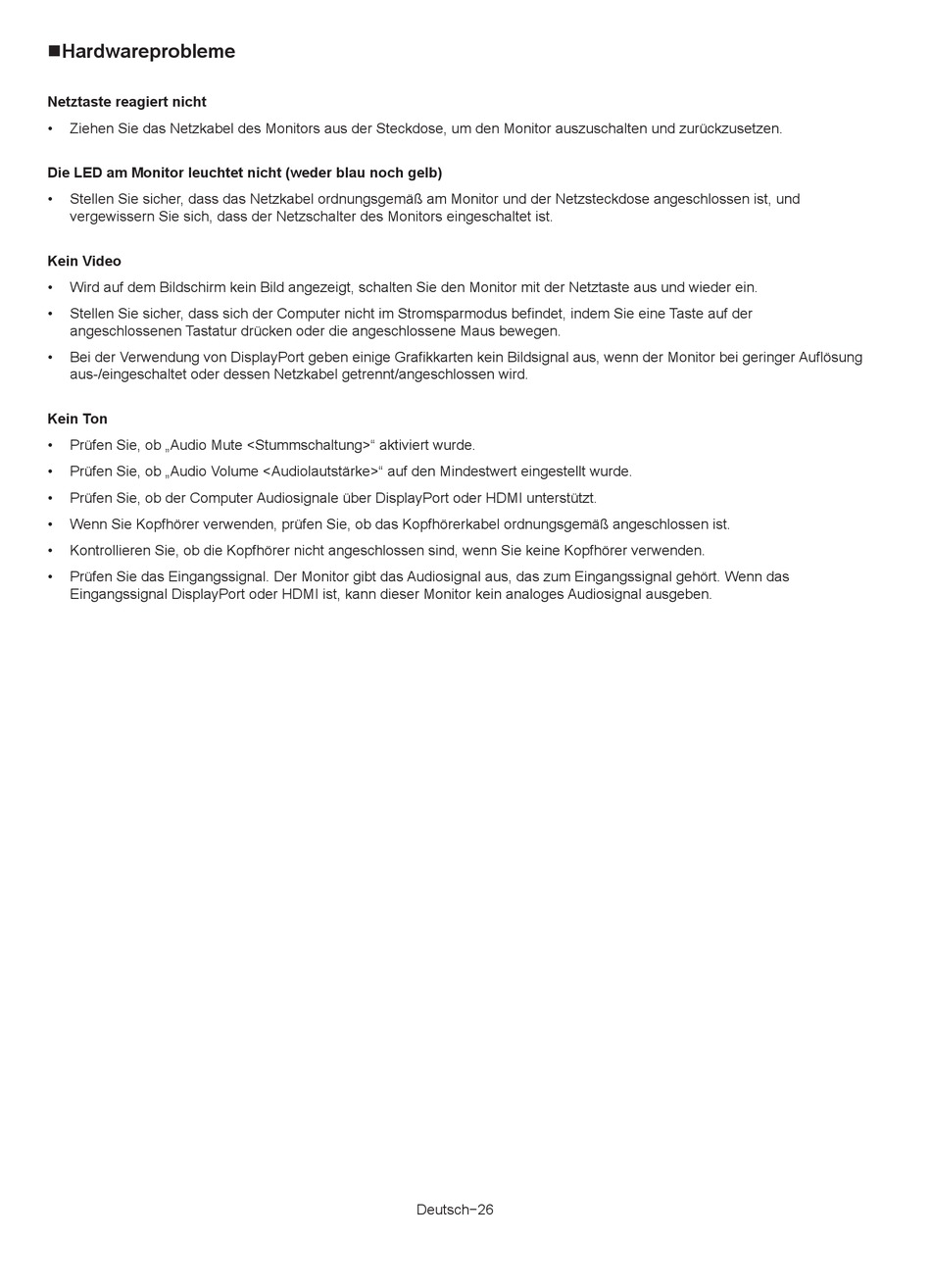 Eingangssignal DisplayPort oder HDMI ist, kann dieser Monitor kein analoges Audiosignal ausgeben.
