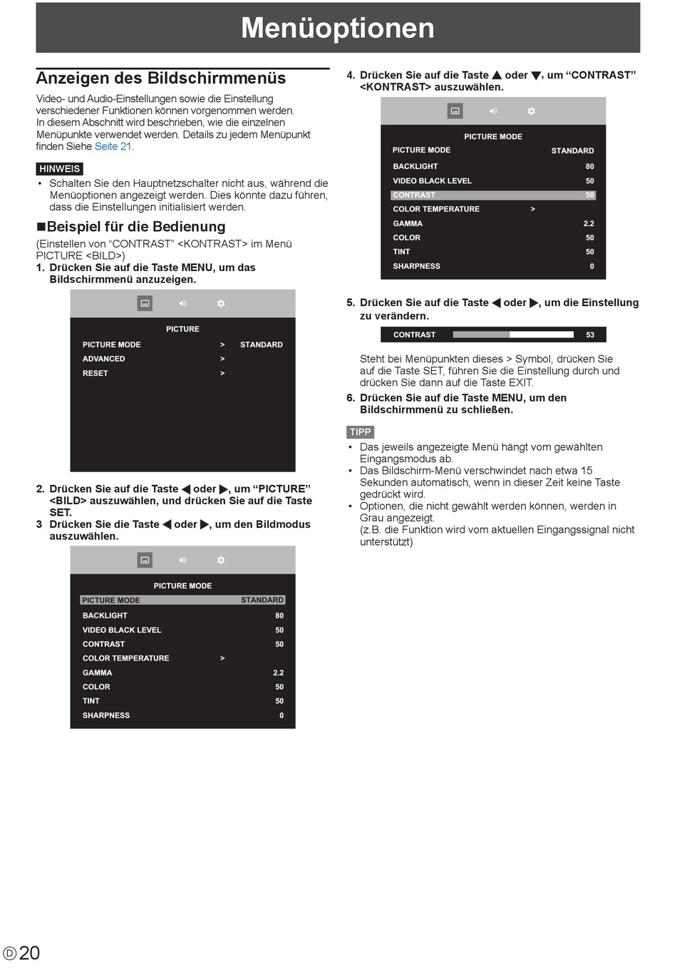 (Einstellen von "CONTRAST" <KONTRAST> im Menü