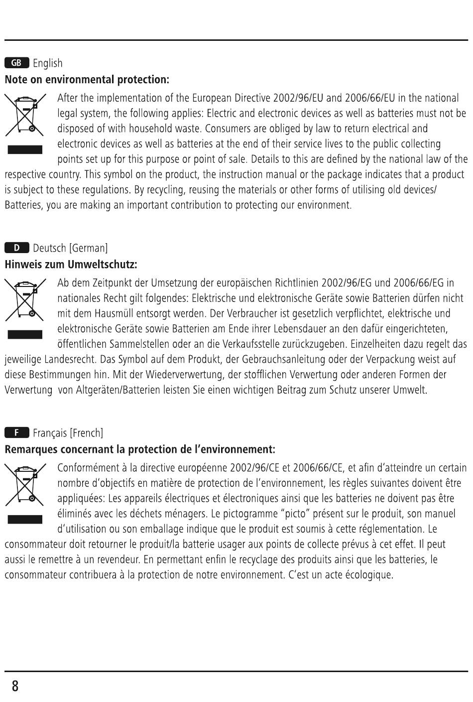 egalsystem, thefollowing applies: Electric a ndelectronic d evices aswellasbatteries mustnotbe