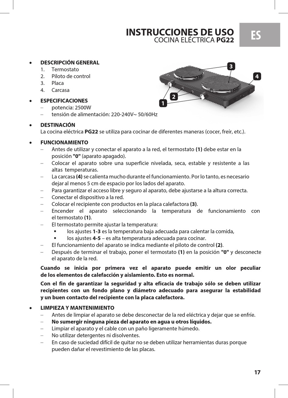 La cocina eléctrica PG22 se utiliza para cocinar de diferentes maneras (cocer, freír, etc.).