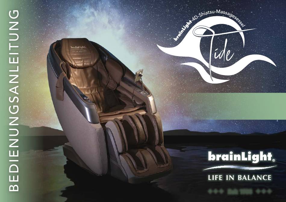 Shiatsu-Massagesessel Tide brainLight ® GARANTIE UND KUNDENSERVICE Vielen Dank, dass Sie sich für den brainLight-4D- Shiatsu- Massagesessel Tide entschieden haben. Die brainLight GmbH räumt ihren Kunden folgende Spüren Sie die Kraft der Gezeiten: Genießen Sie ein Gewähr- und Garantieleistungen ein:...