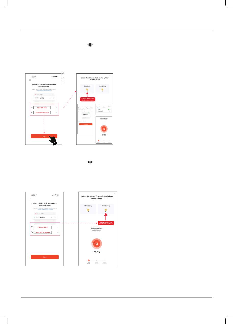 2. Aprire l'applicazione sul cellulare e inserire il nome e la password del WiFi.