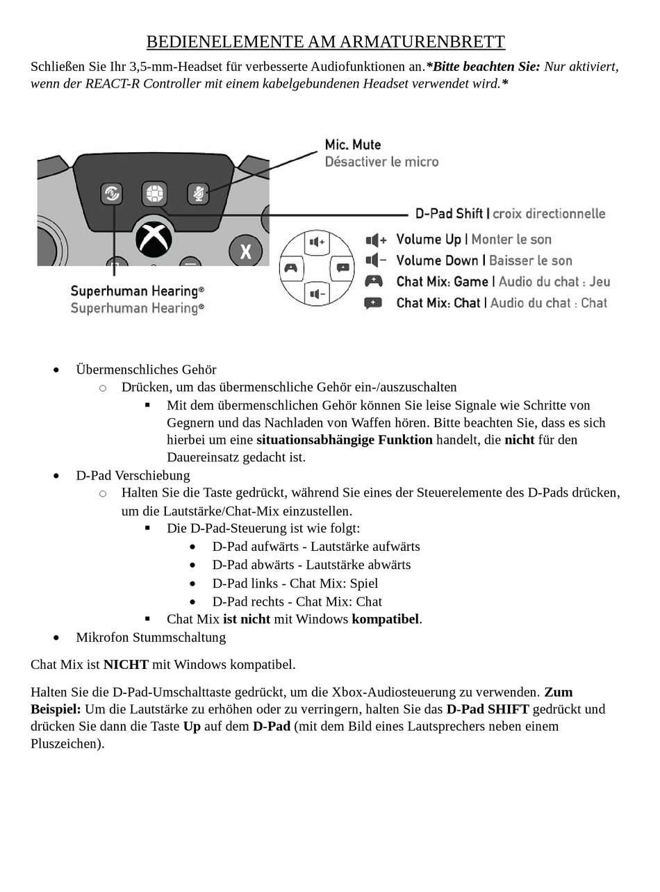 Halten Sie die D-Pad-Umschalttaste gedrückt, um die Xbox-Audiosteuerung zu verwenden. Zum