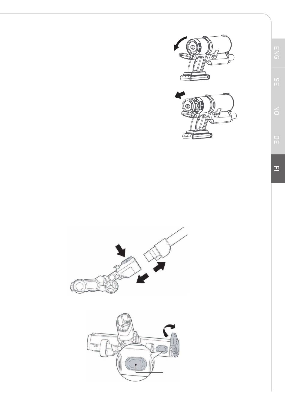 1. Paina harjan vapautuspainiketta ja irrota moottoroitu lattiaharja putken jatkeesta.