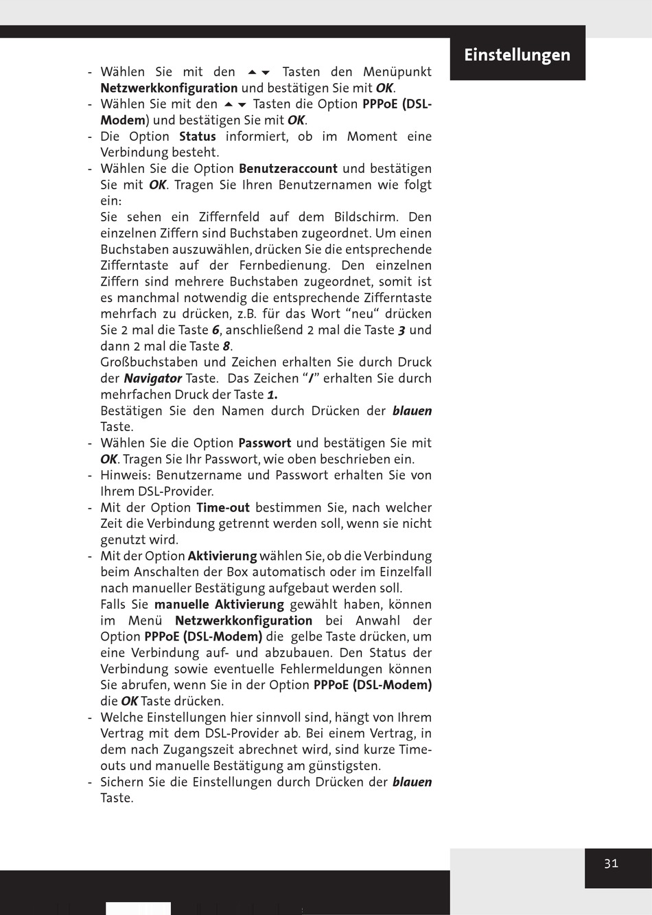 - Wählen Sie mit den 56 Tasten die Option PPPoE (DSL-
