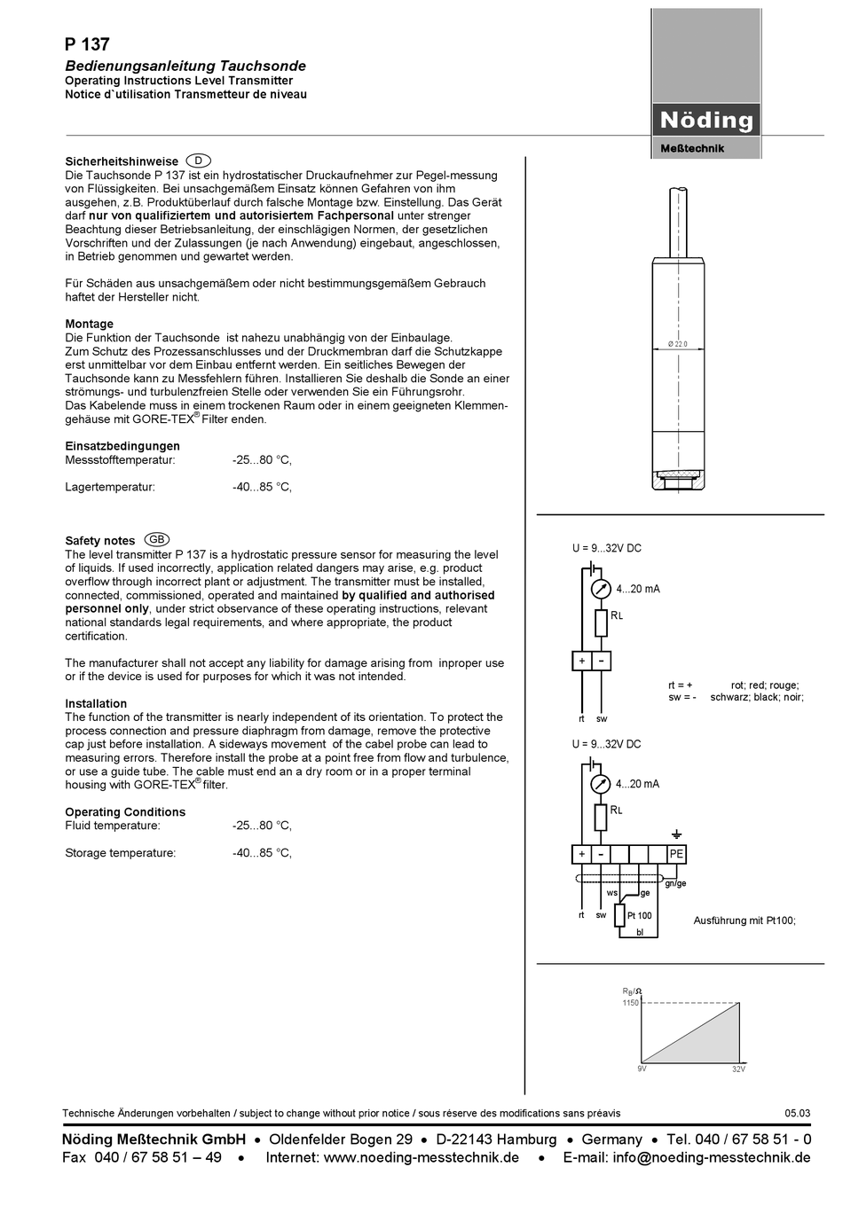 Nöding Meßtechnik GmbH Oldenfelder Bogen 29 D-22143 Hamburg Germany Tel. 040 / 67 58 51 - 0