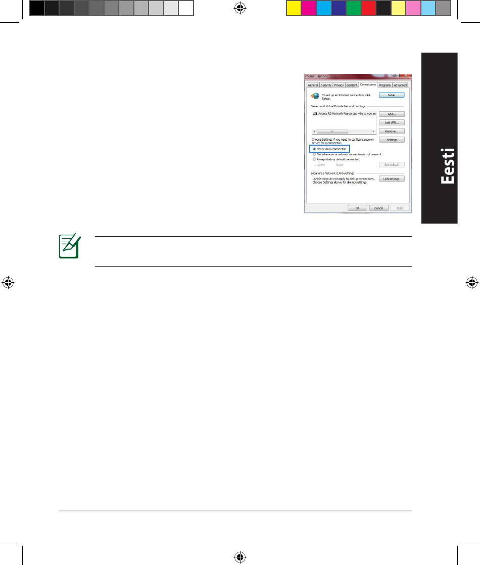 options (Interneti-suvandid) > Connections