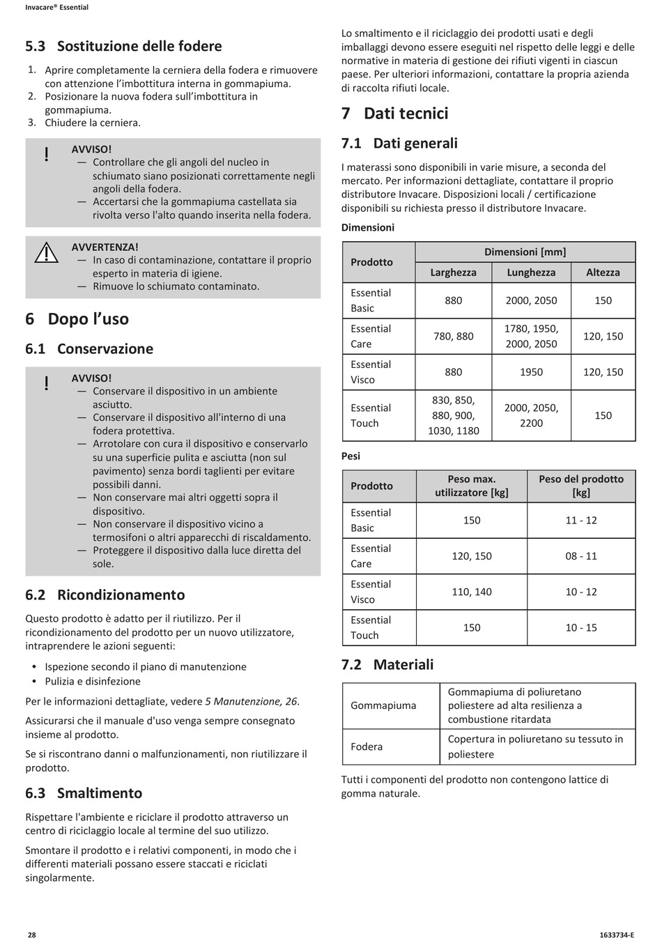 7.2 Materiali