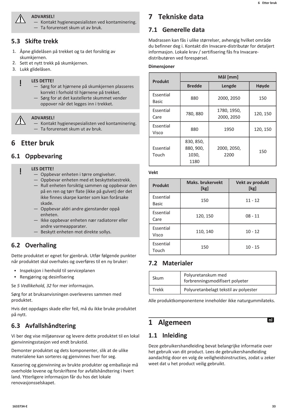 du befinner deg i. Kontakt din Invacare-distributør for detaljert