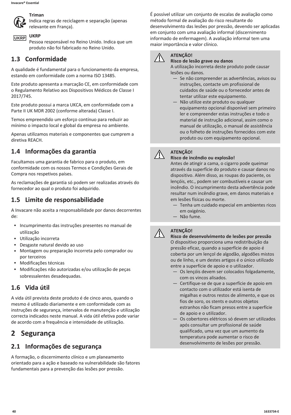 A Invacare não aceita a responsabilidade por danos decorrentes