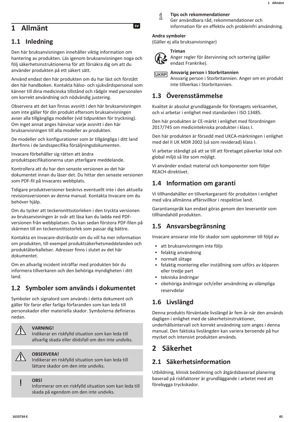 revisionsversionen av denna manual. Kontakta Invacare om du