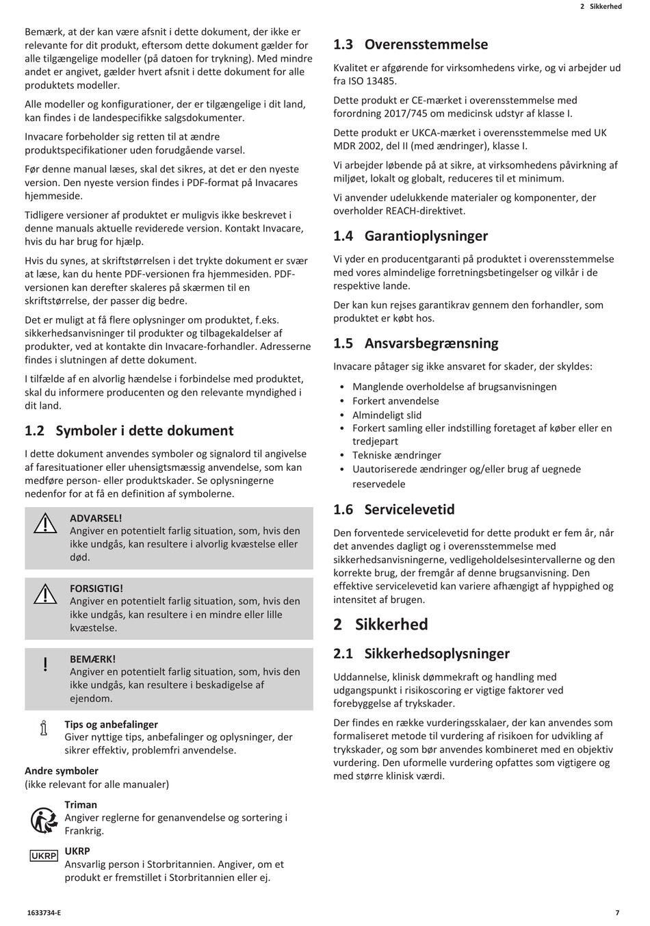 denne manuals aktuelle reviderede version. Kontakt Invacare,
