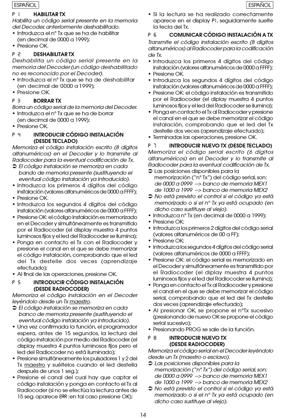• Introduzca n° Tx (en decimal de 0000 a 1999);