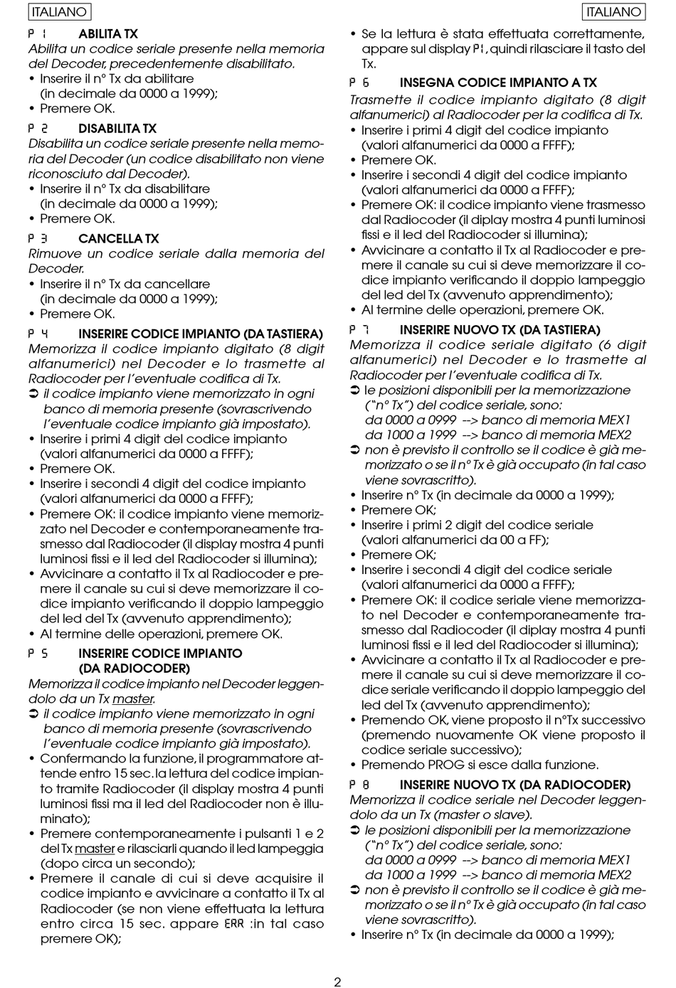 • Inserire n° Tx (in decimale da 0000 a 1999);