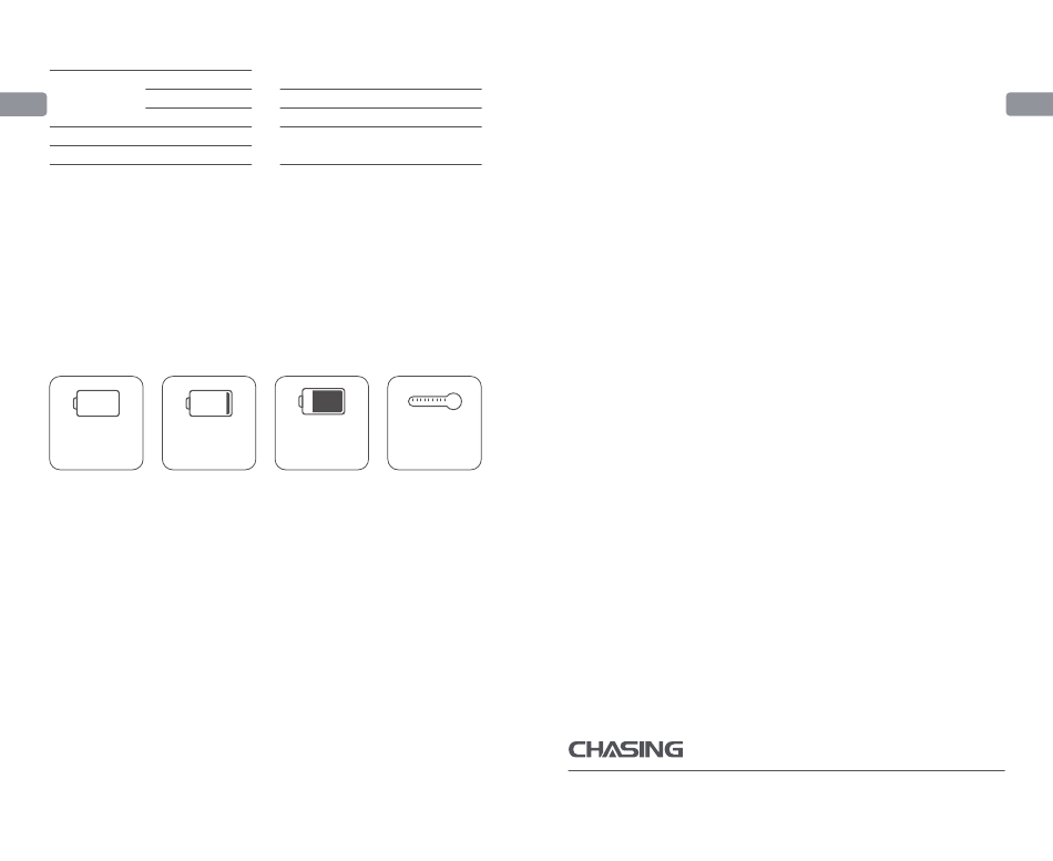 1. CHASING-kontrollkonsolen har stöd för en laddare med 25,2 V/2,9 A och 25,2 V/8 A.