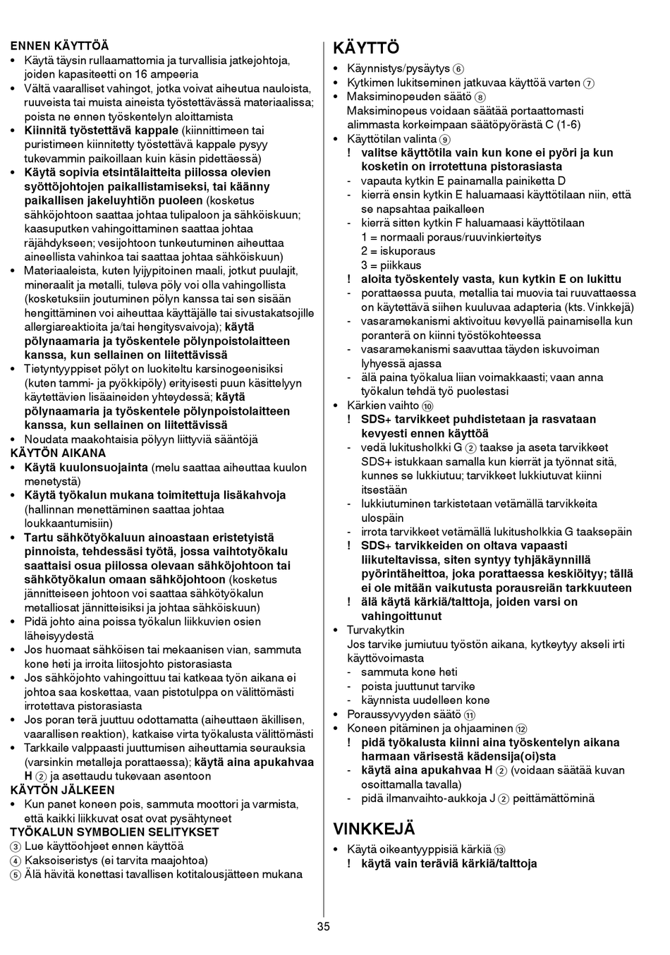 ! pidä työkalusta kiinni aina työskentelyn aikana